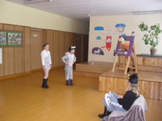 Žiūrėjome muzikos mokytojos Jolantos Pukėnienės ir mokinių parengtą trumpą inscenizaciją „Petunija pamato televizorių“.