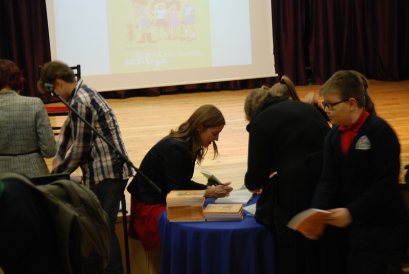 Mokiniai įsigijo dar dažais kvepiančią antrą pasakojimų apie Tomo nuotykius knygą „Kiemo seklys Tomas ir Valius“, o smagaus ir įdomaus renginio pabaigoje nusidriekė ilga eilė, norinčių gauti knygos autorės autografą bei palinkėjimą.