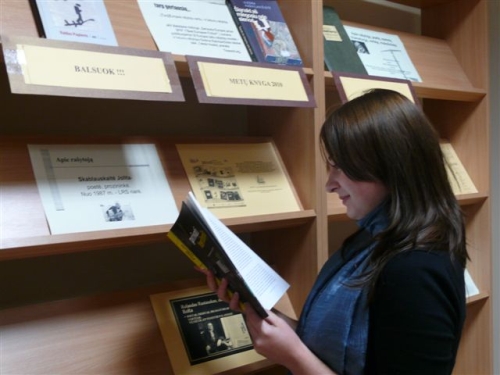 Bibliotekoje vyksta vaizdinis recenzijų pristatymas „Recenzijų lietus“, sukurtas tinklaraštis „Gyvasis žurnalas“, kur mokiniai turi galimybę diskutuoti apie perskaitytas Metų knygas.
