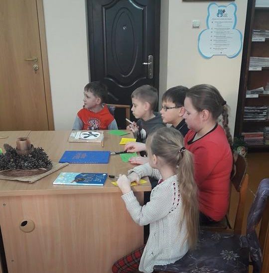 Mažiesiems pristatytos akcijoje dalyvaujančias knygos vaikams: Jurgos Baltrukonytės „Filmukai“, Aido Jurašiaus „Akmenukų pasakos“, Nadios Kovaliovos „Meškis ir Žąsis“, Selemono Paltanavičiaus „Maži ežiuko sapnai“ ir Gendručio Morkūno „Traškančios žvaigždės“. Popietės metu skaitėme ištraukas iš šių knygų, jas aptarėme. Mažiesiems patiko istorija apie dryžuotą kiškiukę ir jos piktuosius brolius pavyduolius iš J. Baltrukonytės knygos „Filmukai“.