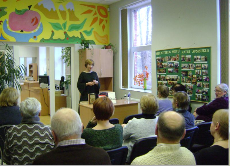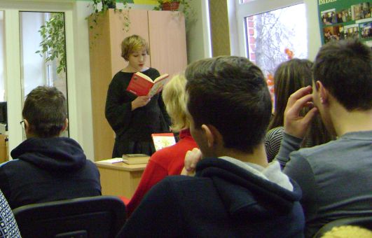 Rašytoja perskaitė ištrauką iš 2014 m. išleisto romano-literatūrinio bande dessinee kūrinio „Klara“ – baisios pasakos ne vaikams apie laimę, baimę ir svajones, paaiškino jo atsiradimo istoriją. Mokiniai domėjosi ne tik viešnios kūryba, bet ir Briuselio mokyklų tvarka (rašytoja gyvena Briuselyje), jaunimo pomėgiais, kūrėjos laisvalaikiu. Su suaugusiais skaitytojais buvo kalbama ne tik apie poeziją, bet ir apie romaną „Eigulio duktė: byla F 117“.