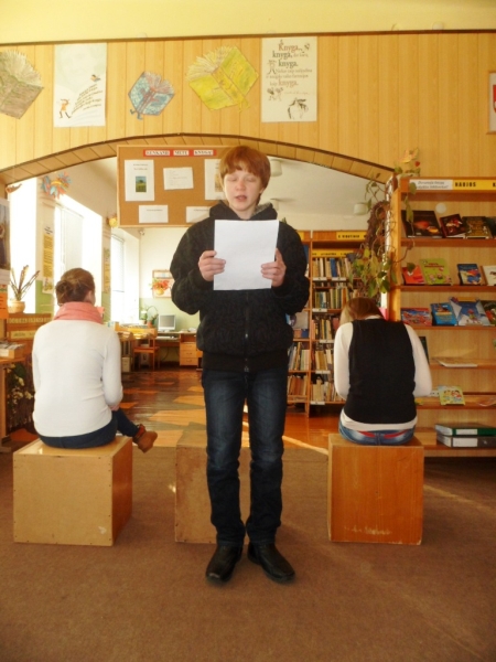 Sausio 28 d. į mokyklos bibliotekos skaityklą buvo pakviesti visi 6-10 klasių mokiniai. Bibliotekininkė susirinkusiems papasakojo apie šaunią jaunąją rašytoją Unę Kaunaitę. Lietuvių kalbos ir literatūros mokytoja Jūratė Kuliukienė – apie talentingąją asmenybę: aktorę, dailininkę, rašytoją Kristiną Gudonytę. Dešimtokai Dalė, Monika, Mantas ir Žygimantas šmaikščiai suvaidino keturis lietuvaičius Paryžiaus konferencijoje. Aštuntokai Agnė, Aira ir Algimantas išradingai skaitė įdomiausias ištraukas iš knygos apie Idą.