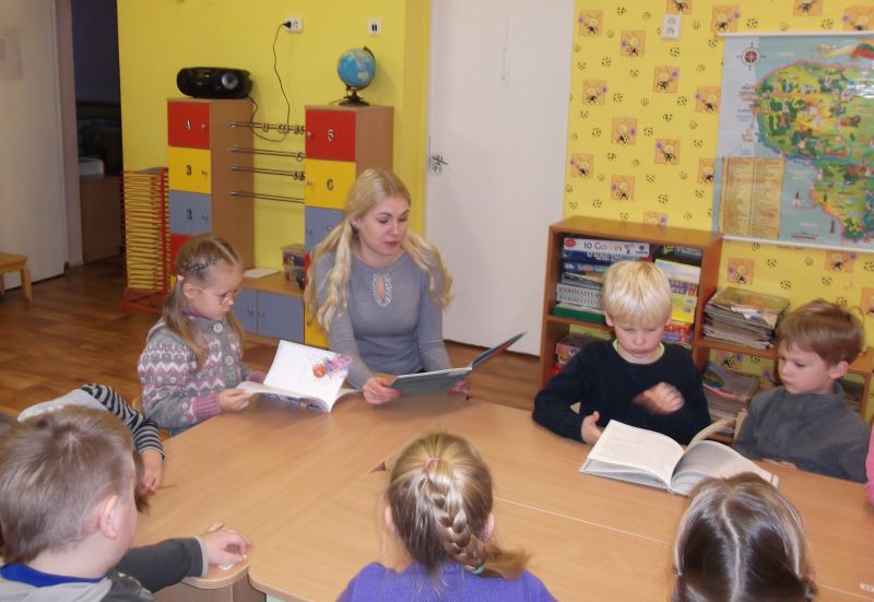 „Šarkiukų“ grupėje keletas vaikučių jau pažįsta raides ir moka skaityti. Pats drąsiausias buvo Matas Trukšinas, kuris ir paskaitė mums visiems iš knygos „Tortas ant debesėlio“, už tai jis gavo knygą dovanų.