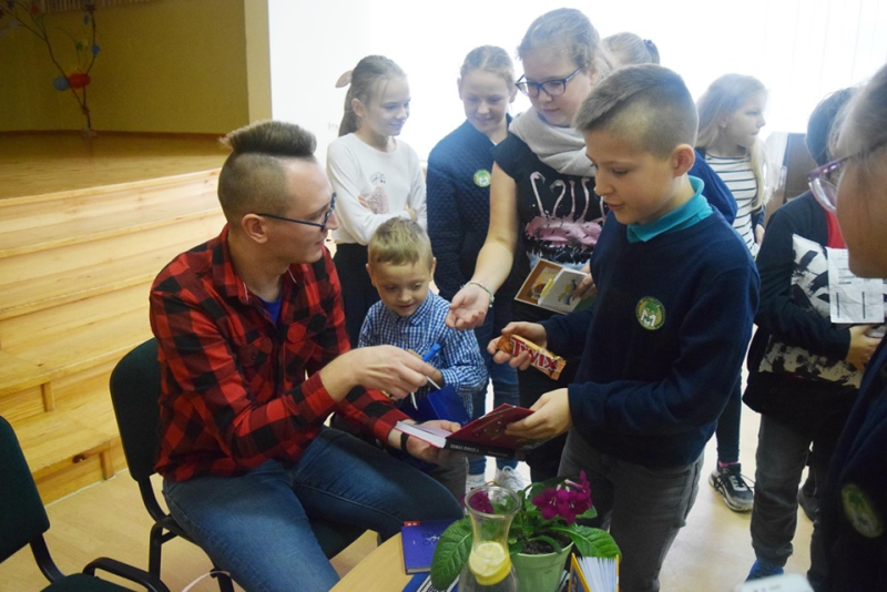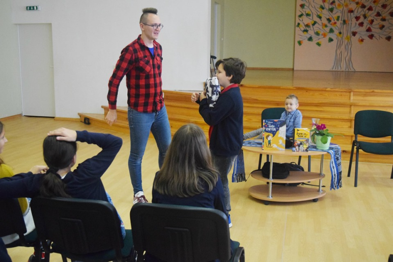 Širvintų „Atžalyno“ progimnazijos penktokai susitiko su vienu populiariausių lietuvių vaikų rašytojų ir LRT radijo laidos vaikams „Domas ir Tomas“ kūrėju bei vedėju Tomu Dirgėla.