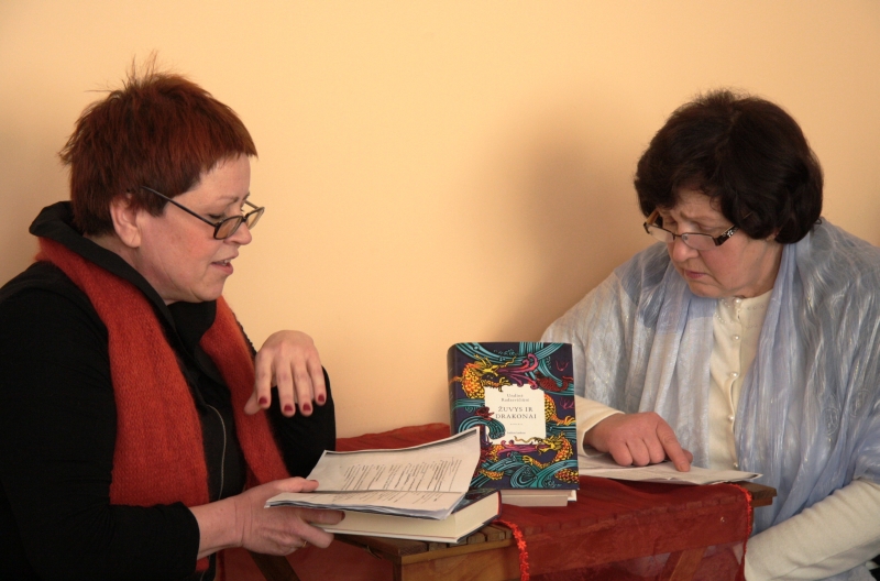 Iki juoko sužavėjo Danutės Varnelienės ir Dalios Laureckienės suvaidintos scenos iš Undinės Radzevičiūtės romano „Žuvys ir drakonai”. Taip ir knietėjo žiūrovams sužinoti linksmus, nepakartojamus herojų nuotykius.