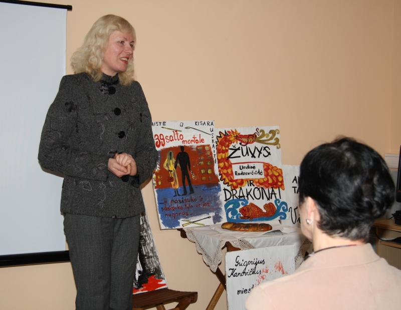 Prasmingai ir linksmai bendraujant, į svečius atvyko ir „gyvos” penkios knygos, kurias „sutupdė” ant kartono Dalia Laureckienė.
