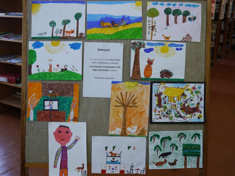Už lango pustant, mokiniai bei jų tėveliai bibliotekoje su nekantrumu laukė atvykstant autorės. Laukdami aptarinėjo savo kurtus piešinius, dalijosi įspūdžiais apie knygos veikėjus Ferdinandą ir Pū. Taip pat mėgino kurti šios istorijos tęsinį – tolimesnį herojų žygį į Laplandiją pas Kalėdų senelį.