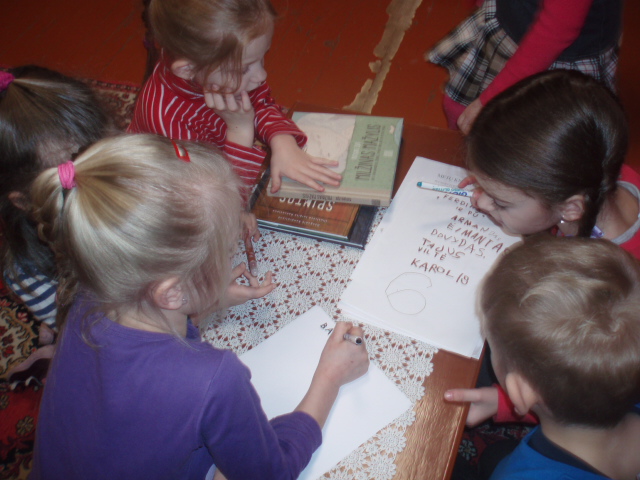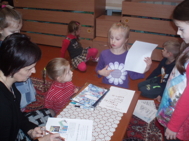 Į svečius atvyko nuolatiniai mūsų bičiuliai Plungės savivaldybės viešosios bibliotekos vaikų literatūros skyriaus vyresnioji bibliotekininkė Stasė Šliuožienė ir skaitymo klubo „Laisvės alėja“ nariai: moksleiviai Vilius, Ieva, Gabrielė, Monika bei klubo prezidentas Irmantas. Jie pristatė Metų knygos rinkimuose dalyvaujančias vaikų knygas, pasakė savo nuomonę apie jas. Bibliotekininkė papasakojo apie šią gražią akciją taip pat komentavo kiekvieną knygą, papildė vaikų pasisakymus nauja informacija. Vėliau visi kartu žaidė, pramogavo. Svečiai paliko knygas, kad vaikai galėtų jas pavartyti bei kartu su pedagogėmis paskaityti ir išrinkti labiausiai patikusią metų knygą.