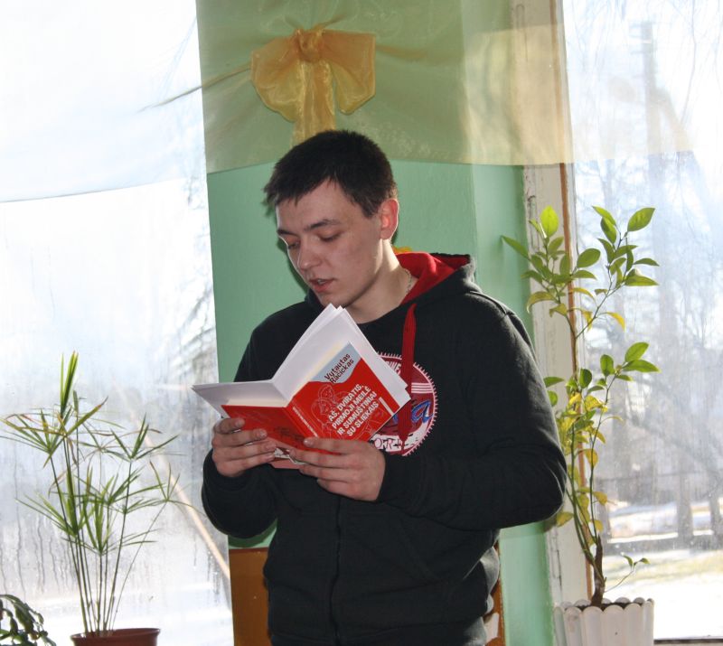 Pamoką pradėjusi mokytoja pasidžiaugė vaikų aktyvumu ir neatsainiu požiūriu į knygos pristatymą, bibliotekininkė Vilija Jocienė papasakojo apie Metų knygų rinkimo akciją ir tradicijas. Pirmoji V. Šukytės knygą „Laimės formulė“ pristatė Gerda Selickaitė. Perskaičiusi vieną iš pasakojimų, ji pasidalijo savo mintimis bei pastebėjimais.