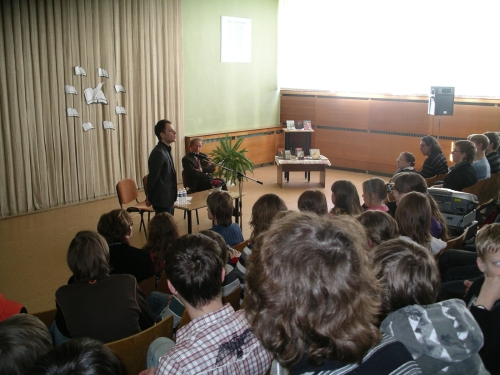 Kartu su garbingu svečiu atvykęs Vilniaus universiteto lietuvių filologijos IV kurso bakalaurantas Alius Avčininkas įžanginėje kalboje, skirtoje vyresniems klausytojams, apžvelgė dabartinę lietuvių literatūros padėtį, akcentuodamas dramaturgijai iškylančias grėsmes. Vėliau visi susirinkusieji atidžiai klausėsi įtaigaus rašytojo K. Sajos pasakojimo apie sunkią vaikystę, skaudžią gyvenimo patirtį, padėjusią sukurti nuotykių kupinų pamokančių istorijų jaunesniems ir vyresniems skaitytojams. Rašytojas pristatė ir paaugliams skirtas naujausias knygas, kurių herojai – nelaimingi vaikai, turintys įveikti begales sunkumų.