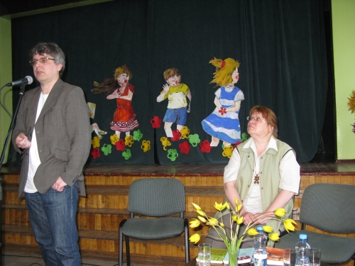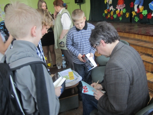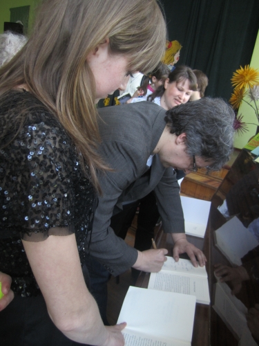 Turėčiau paminėti ir tai, kad mokyklos svečiams knygos yra labai svarbios: vaikų literatūros tyrinėtojai G. Adomaitytei knyga lyg sunki keliautojo kuprinė. Rašytojas R. Misiūnas konkrečiai ir nepasakė, kas jam yra knyga – rašytojas mėgsta kalbėti užuolankomis.
