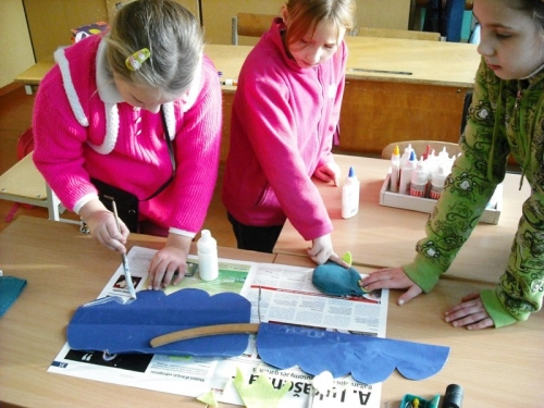 Apie savo meilę švelniems ir mieliems gyvūnėliams išsipasakoję pirmokėliai ir antrokėliai, įkvėpti rašytojos Onos Jautakės knygutės „Gimtadienis su Žvirbliu“, iš siūlų pagamino Skraidantį kačiuką, svajodami, kad vieną dieną ir jų numylėtiniams atsiras sparniukai. Trečiokams irgi labiausiai patiko istorijos apie pačią didžiausią kiekvieno vaiko šventę – gimtadienį – veikėjas. Iš drabužių pakabos jie gamino Nepaprastą kačiuką.