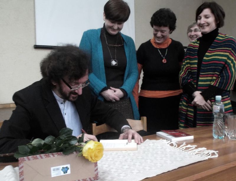 Susitikimo bibliotekoje metu rašytojo kūrybinę veiklą pristatė Skaitytojų aptarnavimo skyriaus vedėja Dalia Kaselytė. Renginio dalyviai galėjo pasiklausyti romano „Maša, arba Postfašizmas“ ištraukos, kurią skaitė skyriaus bibliotekininkės Vilma Zakarauskienė ir Žaneta Pakulnienė. Bibliotekoje veikė rašytojo kūrybai skirta spaudinių paroda.