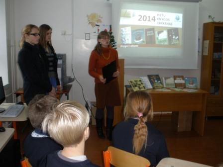 Šių metų gruodžio 8-9 dienomis gimnazijos bibliotekoje vyko šių knygų pristatymas. Renginyje dalyvavo trečių ir ketvirtų klasių mokiniai. Mažieji dalyviai klausėsi ištraukų iš knygų, kurias skaitė II b gimnazijos klasės mokinės Deimena Maraulytė ir Brigita Griškutė, o apie autores kalbėjo bibliotekininkė Vilma Petkutė. Renginio pabaigoje buvo išdalytos skrajutės apie pristatytas knygas ir mokiniai pakviesti aktyviai skaityti knygas bei už labiausiai patikusias balsuoti.