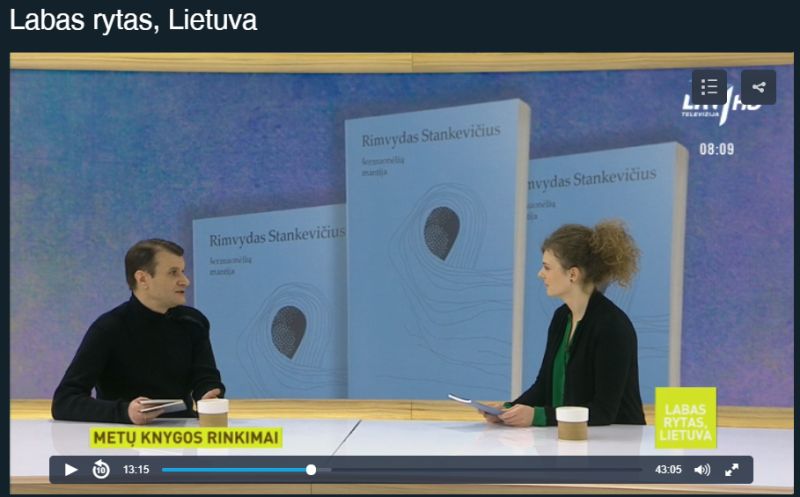 Šiandien, sausio 23 d., LRT televizijos laidoje „Labas rytas, Lietuva“ viešėjo poetas Rimvydas Stankevičius ir pristatė savo knygą „Šermuonėlių mantija“, kuri pretenduoja tapti poezijos Metų knyga.