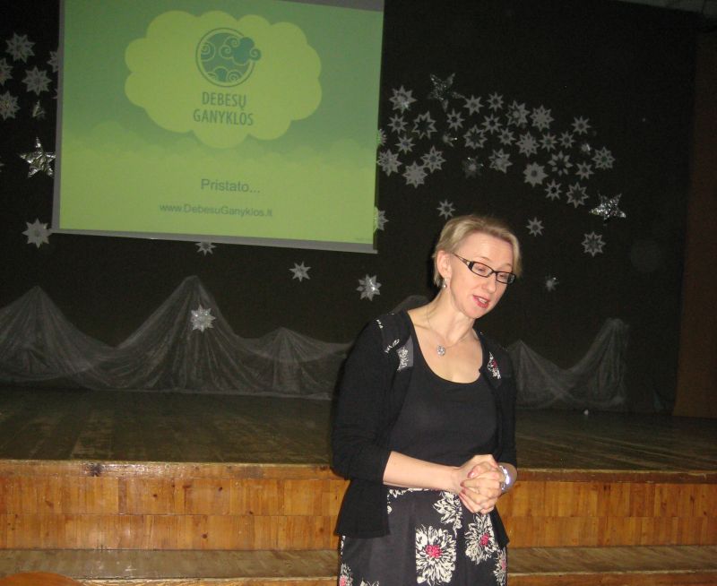 Danguolė Kandrotienė – naujos leidyklos „Debesų ganyklos“, kuri yra naujas VĮ „Terra publica“ prekinis ženklas, skirtas vaikams, vadovė ir viena iš steigėjų, todėl pirmiausia papasakojo apie leidyklos veiklą. Paskui viešnia, pasinaudodama skaidrėmis, trumpai supažindino mokinius su savo kūryba.