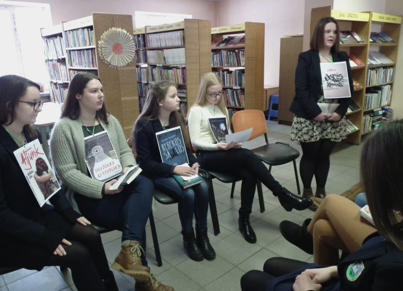 Sausio 20-tą dieną, trečiadienį, trisdešimt IIIa, IIIb ir Ib klasių Lentvario Motiejaus Šimelionio gimnazijos mokinių kartu su lietuvių kalbos ir literatūros mokytojomis R. Junevičiene ir A. Markauskiene patraukė į miesto biblioteką. Mokiniai pristatė penkias knygas paaugliams, dalyvaujančias „Metų knygos rinkimuose 2015“. Apie skaitytas knygas gimnazistai papasakojo išties įdomiu būdu – kalbėdami pačios knygos vardu.