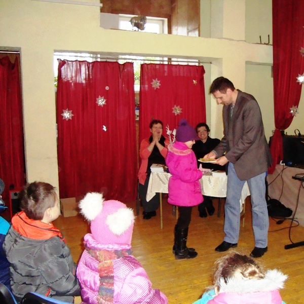 Svečiams įteiktos vaikų padarytos dovanėlės ir antrokų piešiniai.