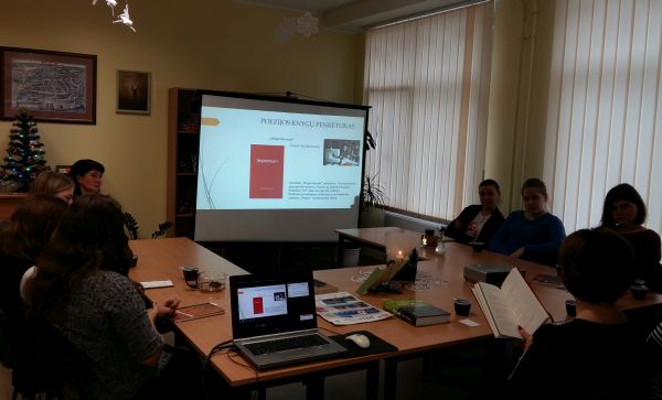 Minėtų autorių kūrinius skaitė vyresniųjų gimnazijos klasių mokiniai. Lietuvių kalbos mokytojos Janinos Šiupšinskienės padedami lyginome šiuolaikinę ir klasikinę poeziją, dalijomės išgyvenimais, teigiamomis emocijomis, analizavome jausmus. Šiandien brandaus žmogaus širdį glosto J. Aisčio, H. Radausko, S. Nėris, J. Strielkūno žodžio muzikalumas. Jauniesiems bičiuliams irgi nesvetimas rimų skambesys. Bet knygose „Stuburo tik punktyrai“, „Roma“, „Singerstraum“, „Giedanti gaidžio galva“, „Adatos“ yra kitokia poezija. Poezija tarsi adatos dūris, tarsi akis graužiantys dūmai, tarsi pasiklydusio Pasaulio oro uoste žmogaus šauksmas, žmogaus, iš baimės ir nevilties perkreiptu veidu. Tai poezija apie „dabar“, nepagražintą, o išgyventą šiandieną, apie skubantį ir nespėjantį, apie sutrikusį ir susireikšminusį, apie teisų ir klystantį, apie vis iš naujo ir iš naujo išgyvenantį savyje sumaištį ir absurdą žmogų. Apie tai ir kalba poetai E. Ališanka, M. Balakauskas, S. Eidrigevičius, D. Gintalas, G. Kazlauskaitė.