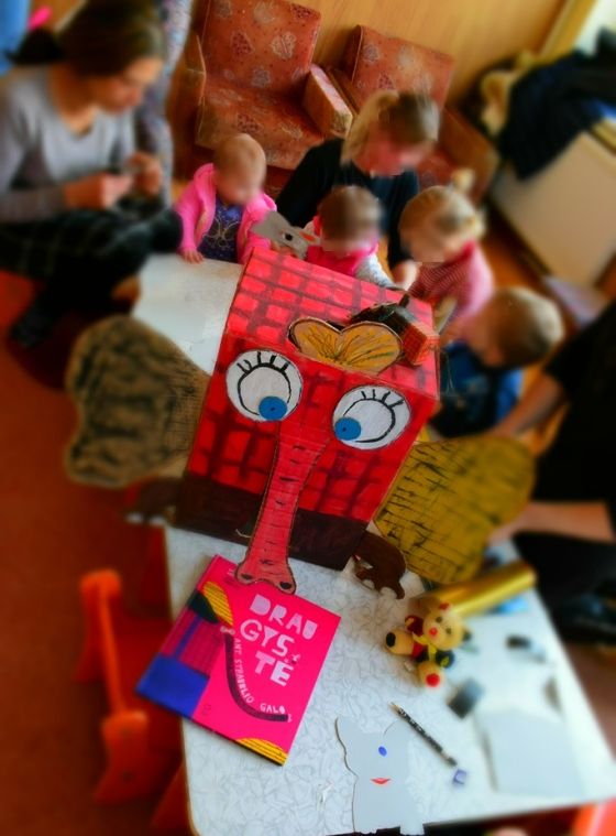 Vaikučiai, mamų padedami, iš popieriaus karpė knygos herojus ir linksmai žaidė. Po užsiėmimo nuvargę, bet laimingi mažyliai keliavo miegoti, o mamos džiaugėsi kartu su vaikais smagiai praleistu laiku.