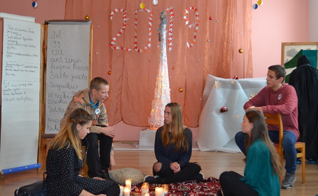 Kalėdinio karnavalo šventėje vyko klasių vaidinimai iš akcijos knygų.