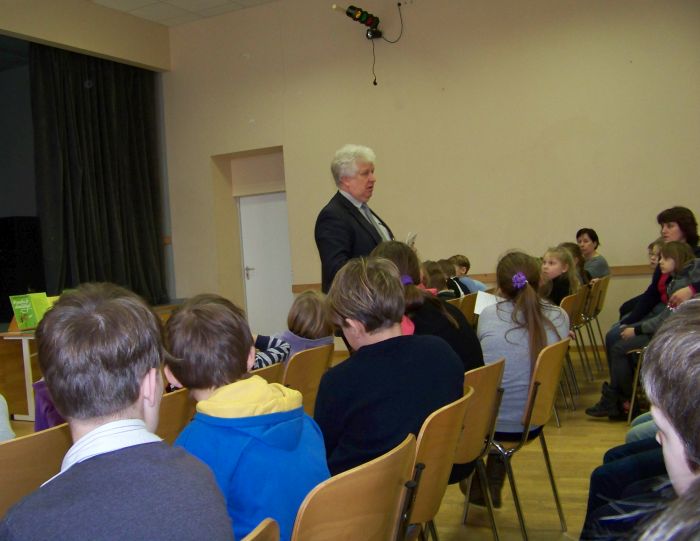 S. Paltanavičius trumpai apžvelgė knygos kelią nuo autoriaus sumanymo iki knygos atsiradimo ant skaitytojo stalo. Žinomas gamtininkas ir fotografas akcentavo, kokios svarbios knygose vaikams apie gamtą yra iliustracijos. Autorius papasakojo apie anksčiau išleistas knygas, esančias mūsų mokyklos bibliotekoje. Pasaulį jau yra išvydusios 53 rašytojo knygos.