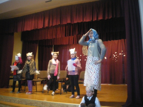 2b klasės mokiniai Rugilė, Gabrielė, Diana, Iveta, Robertas, Ovidijus ir Vytas su mokytoja Nijole Kairiene suvaidino pasaką apie keturias išlepintas katytes iš Selemono Paltanavičiaus knygos „Kur išskrido pasakėlė“. Taip pat savo įspūdžiais apie šią knygelę dalijosi trečiokė Erika ir jos mama Rita Bliūdžiuvienė.
