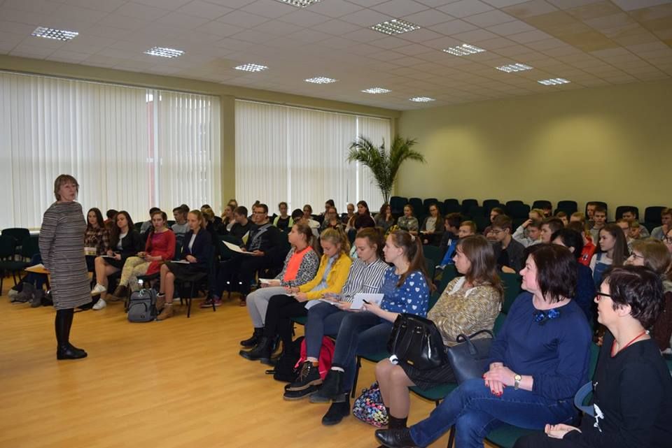 Po pietų rašytoja susitiko su „Atžalyno“ progimnazijos septintokais ir aštuntokais. Vyko improvizuota užklasinio skaitymo pamoka. Visi daug dirbo ir buvo puikiai pasiruošę. Moksleiviai Kristupas, Dominykas ir Martynas (mokytoja Irena Gatelienė) pristatė knygos autorę ir jos knygą „Sutikti eidą“, kuri laimėjo paauglių ir jaunimo literatūros konkursą, pelnė IBBY Lietuvos skyriaus skirtą Prano Mašioto premiją, šiais metais dalyvauja Metų knygos rinkimuose paauglių grupėje. Adrija ir Arvilė paskaitė ištrauką iš šios knygos. Rašytoja yra sakiusi: „Laikausi požiūrio, kad egzistuoja ne tik šita tikrovė arba, tiksliau sakant, kad ne viską, kas egzistuoja šioje tikrovėje, mes suvokiame.“ Kokią istoriją slepia tas paliktas ataušusios kavos puodelis? Norėdama tai išsiaiškinti knygos herojė Algė daug sužinos ir apie tai, kad išgalvota gali pasirodyti besą tikra. Kuris iš mūsų nenorėtų turėti atsidavusio draugo? Ar mums būtų svarbu iš kokio jis pasaulio?