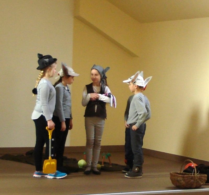 Metų knygų rinkimų „maratonui“ einant į pabaigą, su mažaisiais skaitytojais paruošėme trumpus inscenizuotus knygų pristatymus. Dar kartą pakvietėme visus Piniavos mokyklos pradinukus, jų mokytojas, paruošiamosios grupės vaikučius. Renginio metu dar kartą bandėme sudominti tuos, kurie nenorėjo ar nespėjo perskaityti šaunių penkių knygų. Vaikai susitiko su Meškiu ir Žąsimi, kartu su Ežiuku ir jo mama keliavo klaidžiais miško takeliais, susipažino su Kiškių šeimyna ir dryžuota Kiškiuke, klausėsi pačių vaikų sukurtų akmenukų pasakų ir apsakymo „Gydomųjų žuvų blizgė“ ištraukos.