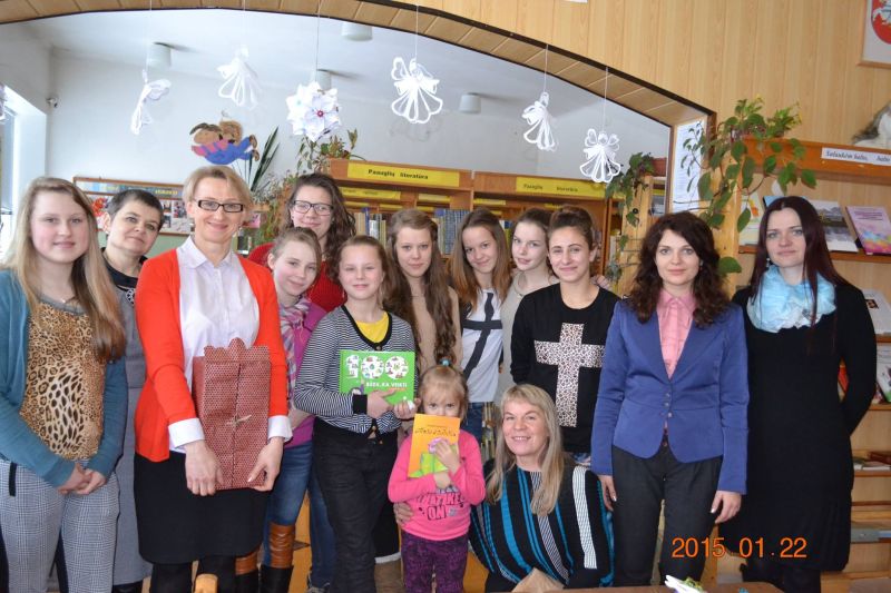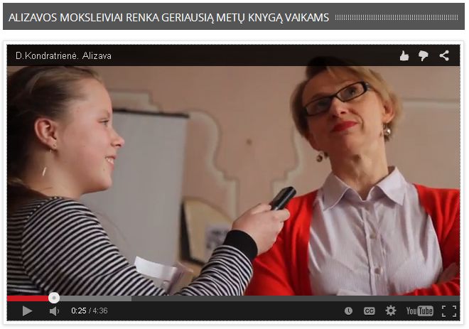 Čia galite pažiūrėti filmuką apie rašytojos viešnagę Alizavos mokykloje: