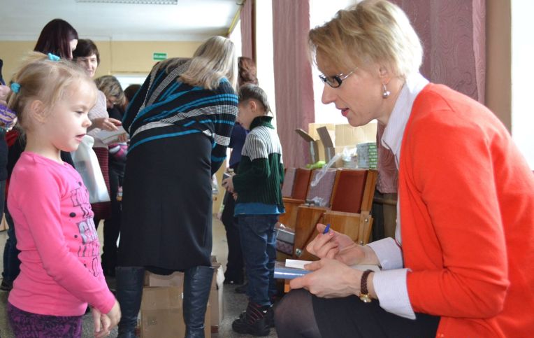 D. Kandrotienė – VšĮ „Terra publica“, leidžiančios puikias Lietuvą reprezentuojančias knygas, vadovė. Į mokyklą ji atvežė daug gražių knygučių. Išsirinkę ir nusipirkę čia pat gavo autorės ar leidyklos vadovės autografą.