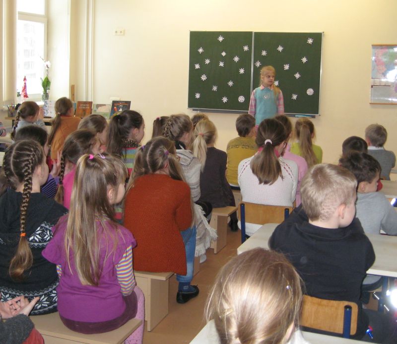 Knygų pristatymą užbaigė meninio skaitymo konkurso dalyvis antrokas Mantas, kuris skaitė Eduardo Selelionio eilėraštį „Vienas“. Atsisveikinant su vaikais, J. Pocienė tradiciškai padovanojo mokiniams knygų skirtukų, paragino skaityti ir aktyviai balsuoti Metų knygos vaikams rinkimuose.