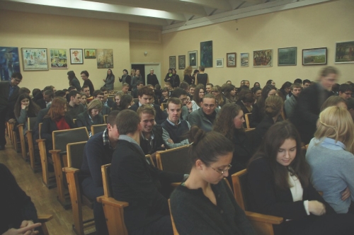 Renginį pradėjo literatūros mokytoja Dainora Eigminienė. Ji pristatė garbius svečius ir pakvietė visus maloniai diskusijai. Kritikas L. Jonušys išsamiai apibūdino esė žanro specifiką, pristatė žymiausius lietuvių eseistus bei atskleidė lietuvių prozininkės, eseistės G. Radvilavičiūtės kūrybos savitumą.