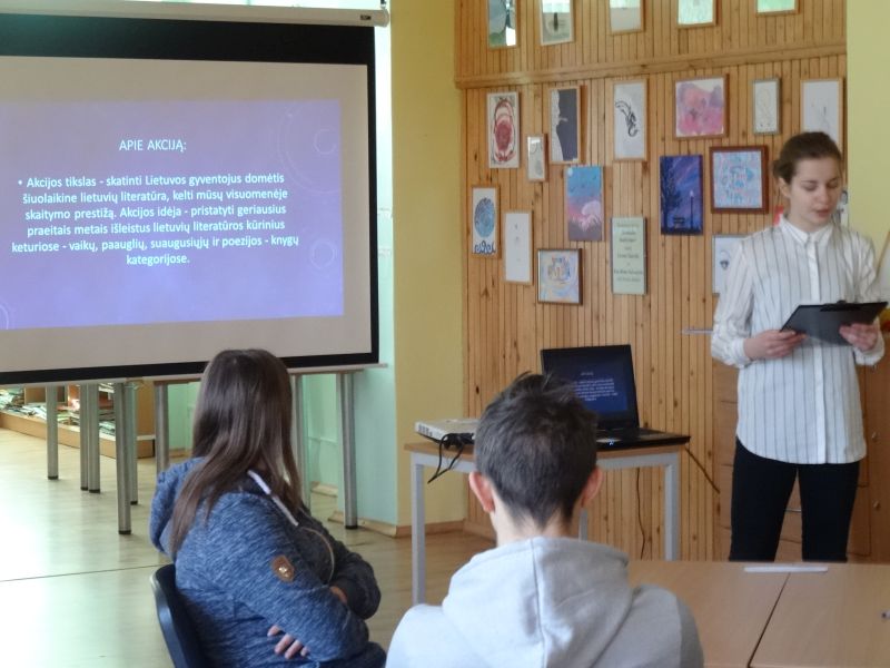 Kiekvienais metais jos aktyviai įsitraukia į respublikinę akciją „Metų knygos rinkimai“ ir siekia, kad joje dalyvautų kuo daugiau mokinių. Sausio 16 dieną klubo narė Greta savo klasės draugams vedė atvirą pamoką, kurios metu pristatė paauglių kategorijoje nominuotas knygas bei jų autorius. Po pamokos dalyviai turėjo atlikti įvairias užduotėles, o gerai jas atlikę rinko taškus savo grupei. Pralaimėjusių nebuvo, visi buvo apdovanoti ir dar kartą paskatinti skaityti ir balsuoti už labiausiai patikusią knygą.