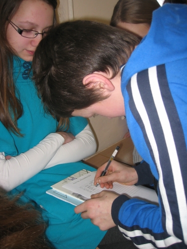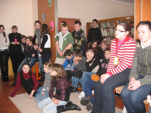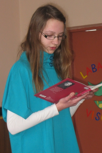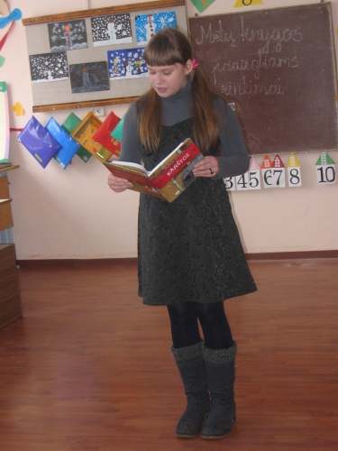 Po to iniciatyvą perėmė patys mokiniai. Septintokė J. Vaitiekūnaitė pristatė G. Morkūno apysaką „Velniškai karštos atostogos“, aštuntokės G. Ačaitė – K. Sajos mažą romaną nebemažam skaitytojui „Čia kažkas yra“, A. Sinkevičiūtė V. Račicko romaną „Baltos durys“, o devintos klasės mokinė E. Kelpšaitė – R. Misiūno apysaką „Sutrumpintas meilės terapijos kursas“.