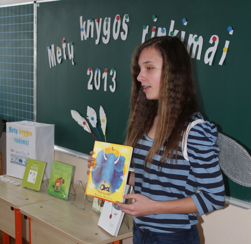 2014 m. sausio 15 d. Vilniaus rajono Kalvelių Stanislavo Moniuškos gimnazijos bibliotekininkės pradinių klasių mokiniams organizavo renginį, skirtą akcijai „Metų knygos rinkimai 2013“.
