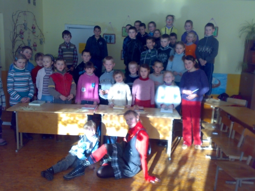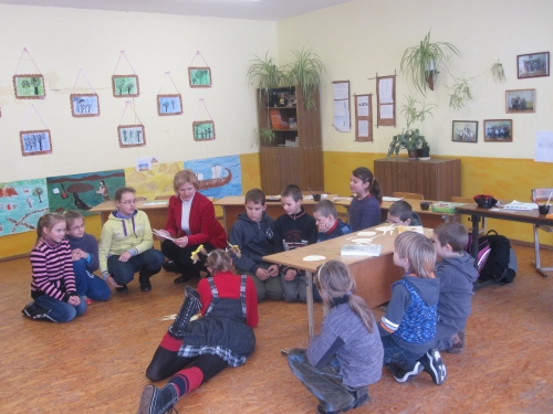 Mokykloje mane sutiko būrys vaikučių. Labai apsidžiaugiau, kad jie iš karto suprato iš kokios aš pasakos ir dar labiau nustebau, nes apie mane kai kurie mokinukai buvo jau daug skaitę ir girdėję. Visi susėdome grupelėmis ratu ir pasinėrėme į knygų pasaulį, kuriame patyrėme įdomių, gražių, stebuklingų ir nepakartojamų nuotykių.