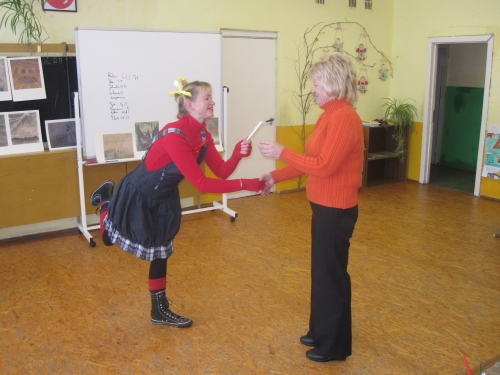 Vėliau kiekvienai knygelei dovanojau besišypsančią saulę, o mažieji mokinukai dovanojo spindulėlį tai saulytei, kurios knygelė jam labiausiai patiko. R. Šerelytės knyga „Krakatukų jūra” surinko daugiausiai saulės spindulėlių. Pabaigai visiems išdalinau atsiminimo dovanėles ir tariau nuoširdų AČIŪ už bendradarbiavimą ir šypsenas.