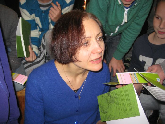 Vaikai buvo labai aktyvūs, klausimai autorei liejosi lyg iš gausybės rago. Rašytoja, atsakinėdama į klausimus, pamažu, lyg mozaiką, dėliojo savo biografiją, įpindama ir svajonių, ir ateities planų. Vaikai džiaugėsi, kad greitai pasirodys dar viena Birutės Mar knyga. Ji bus apie vaiduokliukus – tokius, kurie gyvena Japonijoje ir yra visai nebaisūs.