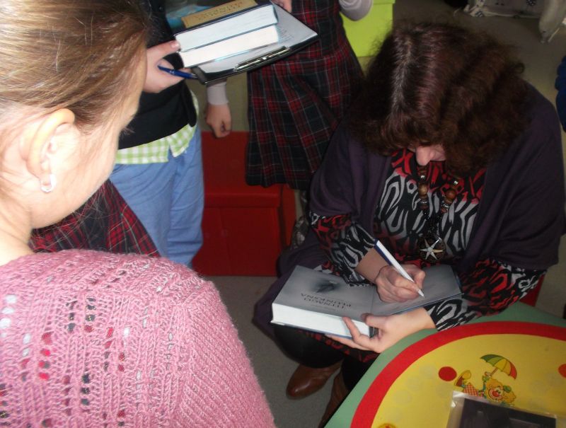 Autorė šmaikščiai ir įtikinamai atsakinėjo į ketvirtokų pateiktus klausimus. Vaikai klausė: „Kada rašote knygas?“. Autorė teigė, kad knygas rašo naktimis, kai visi miega. Į klausimą ar džiaugiasi, kad knyga įtraukta į Metų knygos rinkimus, N. Vaitkutė atsakė, kad nei džiaugiasi nei liūdi. Vaikams smalsu buvo sužinoti, kokia mėgstamiausia vaikystės knyga. Į šį klausimą autorė atsakė, kad A. Lindgren „Ronja plėšiko duktė“ ir T. Janson „Troliai Mumiai“. Autorė prasitarė, kad rašymo anksčiau nelaikė rimtu užsiėmimu, nemanė tam turinti talentą, šį užsiėmimą ir dabar laiko hobiu: „Rašyti nėra vargas, bet indus plauti, ko gero, yra sunkiau“.