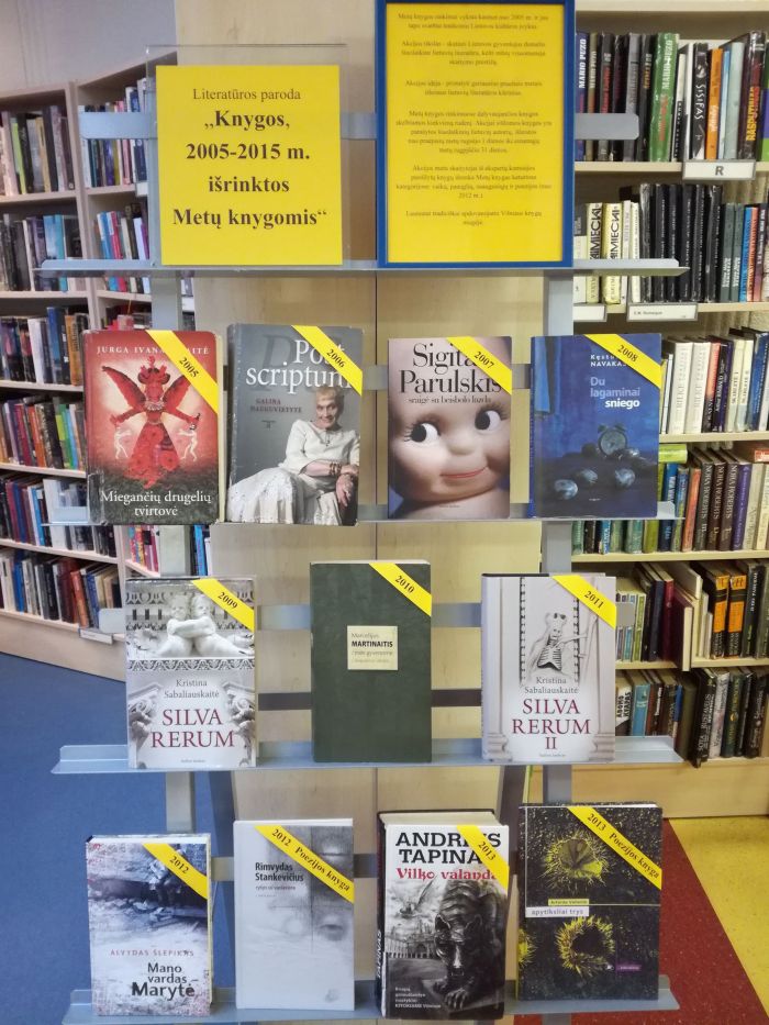 2017 m. sausio–vasario mėnesiais abonemente veikia literatūros paroda „Knygos, laimėjusios Metų knygos rinkimuose 2005–2016 m.“. Kai parodoje išsirikiavo keturiolika knygų, jau laimėjusių šiuose rinkimuose, iš karto atsirado norinčiųjų jas skaityti. Ruošiant šią parodą, ir A. Šlepiko, ir K. Sabaliauskaitės visas knygas buvo išsinešę skaitytojai, todėl teko jas skolintis iš kitų bibliotekų.