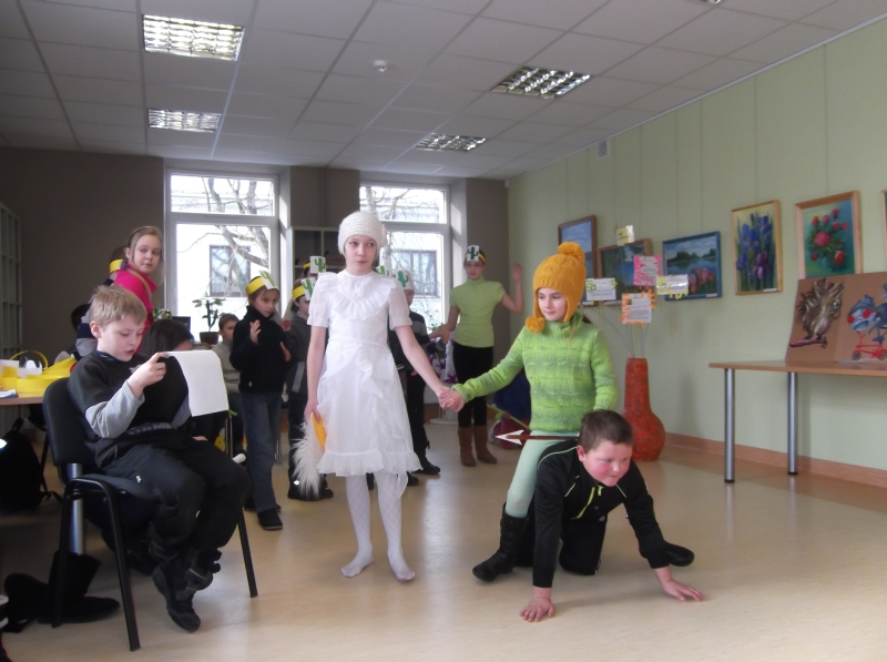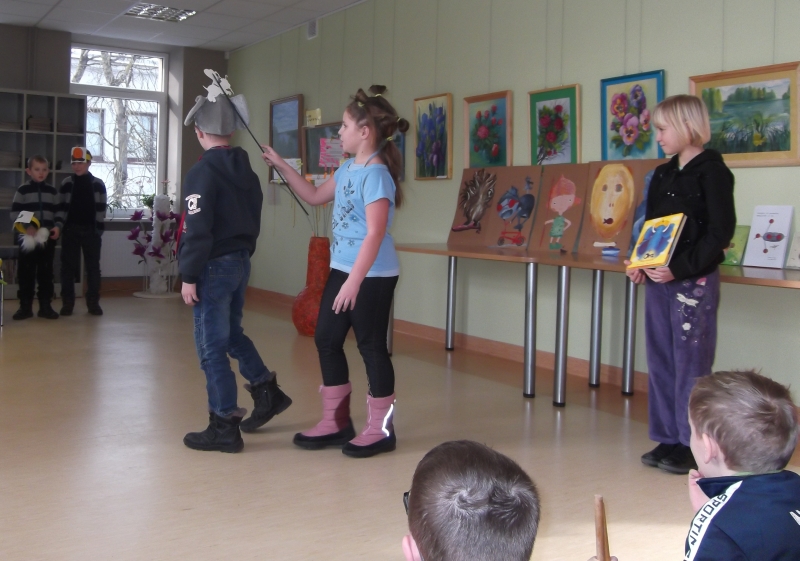 Sausio 28 d. bibliotekoje vėl svečiavosi pradinės mokyklos 3c (mokytoja Gita Bakasėnienė) ir 3d klasių (mokytoja Vitalija Šapurienė) mokiniai. Jie parengė įdomius, linksmus, teatralizuotus Metų knygų pristatymus. 3c klasės vaikai pristatė I. Vizbaraitės „Karžygiuko istorijos“ nuotykius. Karžygiukas Bagulis (Karolina Pučinskaitė) su ištikimuoju arkliuku Raguliu (Kristis Ikanevičius) išjojo į tolimą kelionę ieškoti debesėlio (Modesta Bakšanskytė). Jiems reikėjo įveikti tamsią girią, įsidėmėti Skarabėjaus (Arnas Paliulis) nurodymus, perbristi liulančią pelkę, kol pagaliau kaktusų giraitėje surado baltą debesėlį – gėlytę. Visi vaikai, įkūniję pasakojimo personažus svarstė garsiai, kalbėjosi su kitais, kad kartais svarbiau ne tik surasti, bet ir išsaugoti. Bumbos Dumbos istoriją pasakojo skaitovas (M. Bakšanskytė) ir keistuolis, kodėlčiukas Bumba Dumba (Ignas Baronas). Kodėl viskas yra taip kaip yra? Todėl, kad taip yra. Juk žmogaus gyvenimo kelionė yra kiekviena diena. 3c klasės vaikai supažindino su mielu, patraukliu personažu Kiukiu (Tadas Tamošiūnas), mergaite Luka (Juta Zabarauskaitė), pristatymą apjungė pasakotojas (Karolina Sėjūnaitė). Kam įdomu, kaip Kiukis daro vandens lovą, ieško Elektros ir Šalčio bobos ar sugalvoja jūrą namuose, būtinai perskaitys šią knygelę. Kęstučio Navako knygelės personažai: uodas Udo (Amina Judėnaitė), dramblys Dra (Ignas Kanapeckas), antilopė (Rugilė Gadliauskaitė) su vaikais svarstė, kodėl gi tie herojai niekaip nesusikalba. Netikėtai bibliotekoje pasirodžiusi bobulytė Stasė susilaukė daugiausia dėmesio. Buvo užduota begalė klausimų. Vaikams rūpėjo viskas: kur ji gyvena, ką valgo, kokia įdomiausia knyga, skaniausias vaisius ir kaip grįš atgal į knygą. Vaikams bobulytė atnešė lauktuvių po saldainį, tikriausiai iš varnų „pasiskolino“. Visi renginiuose dalyvavę vaikai vaišinosi žolelių arbata, saldumynais, visi balsavo už labiausiai patikusią knygą. Šiuo metu laimi Antano Šimkaus „Vaizdai iš gyvenimo bobulytės ir kt.“.