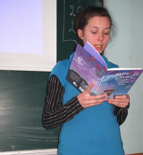Garsios poetės Janinos Degutytės eilėmis prasidėjo popietė Kupiškio rajono Alizavos pagrindinės mokyklos skaitykloje. Susibūrimo tikslas - supažindinti priešmokyklinės grupės ir I-V klasių mokinukus su geriausių 2009 metų vaikų knygų penketuku.