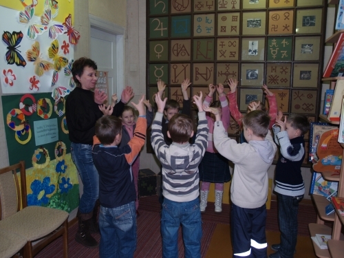 Literatūrinis rytas buvo ypatingas - bibliotekoje sukosi "Ryto ratas". Tai vaikų dainelė, šokis, į kurį sudėta pasveikinimas dienai ir visiems, numatomi šios dienos darbai, susitikimai.