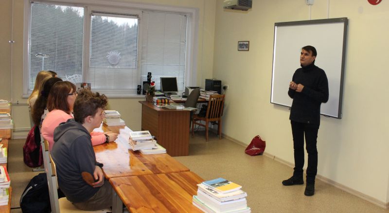 Belaukiant Kalėdų, gruodžio 8 dieną Utenos Adolfo Šapokos gimnazijoje svečiavosi ir dvyliktokams pamoką vedė lietuvių poetas, žurnalistas, eseistas Rimvydas Stankevičius ir tautodailininkė Rasa Slesoriūnienė.