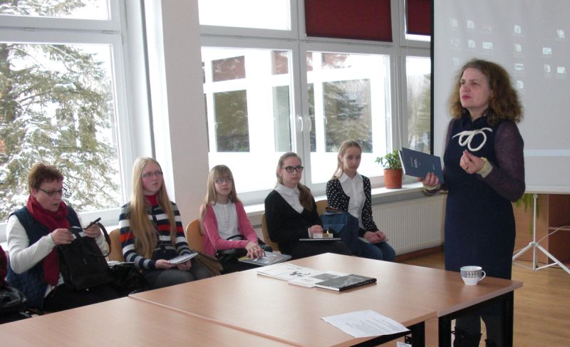 Šiltos, malonios akimirkos tęsėsi klausantis ir mūsų mokyklos lietuvių kalbos mokytojos Ievos Sigitos Naglienės penkių 2014 metų poezijos knygų apžvalgos. Tai A.Gailiaus „Penkiapėdžio sugrįžimas“, G. Kazlauskaitės „Meninos“, M. Nastaravičiaus „Mo“, K. Navako „100 du“ ir V. Stankaus „Iš veidrodžio, už“ pristatymas.