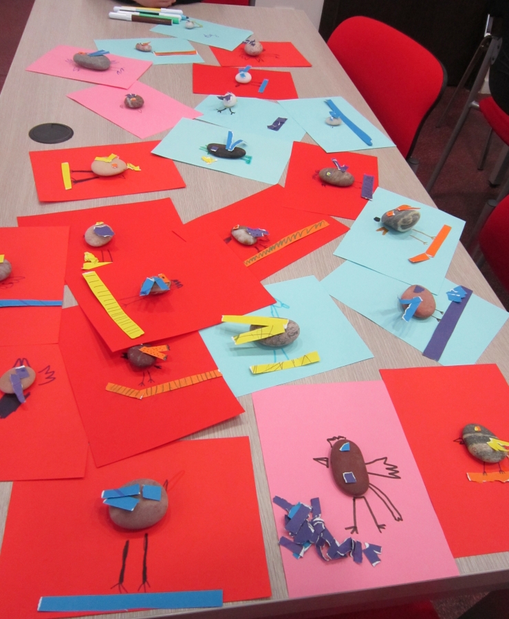 Renginio metu penktokai pristatė savo sukurtas ir iliustruotas akmenukų istorijas. Technologijų mokytoja Jolanta Vaičikauskienė pakvietė antrokus iš Baltijos jūros akmenukų sukurti paukštelį. Visi kibo į darbą – spalvino, piešė, klijavo.