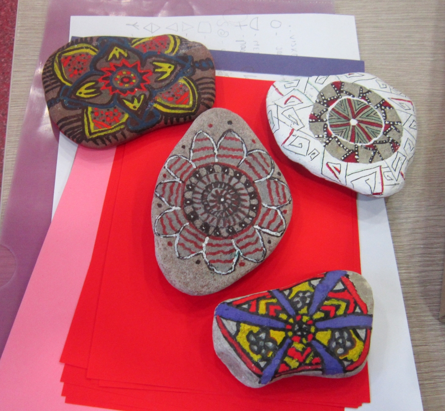 Susitikimo metu veikė 5B klasės mokinių piešinių ir dekoruotų akmenukų paroda „Akmenukai pasakoja...“