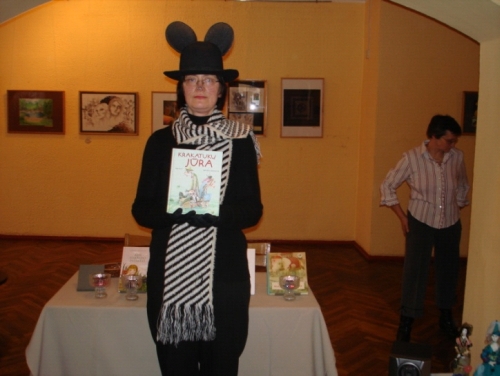 Ištraukas iš K. Kasparavičiaus knygutės „Baltasis Dramblys“ skaitė bibliotekos pelytės. Jos priminė vaikams, kad rašytojas pats iliustruoja savo knygeles. Vaikai įdėmiai klausėsi pasakos apie Baltąjį dramblį, kuris neša sėkmę ir sužinojo, kad kiekvienas savo sėkmę turi pasigauti pats.