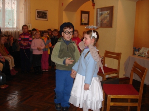 Į kelionę pas Samanų miestelio gyventojus pakvietė VJUC „Varpelis“ „Angeliukų“ grupės vaikučiai kartu su auklėtoja D. Kavoliūniene. Jie inscenizavo Urtės Uliūnės knygos „Kitokia svirplelio diena“ pasakaitę „Medinis angeliukas ir bitė“. Pasižiūrėję šią pasakaitę, renginio dalyviai susimąstė, kaip svarbu visame pasaulyje nelikti vienam.